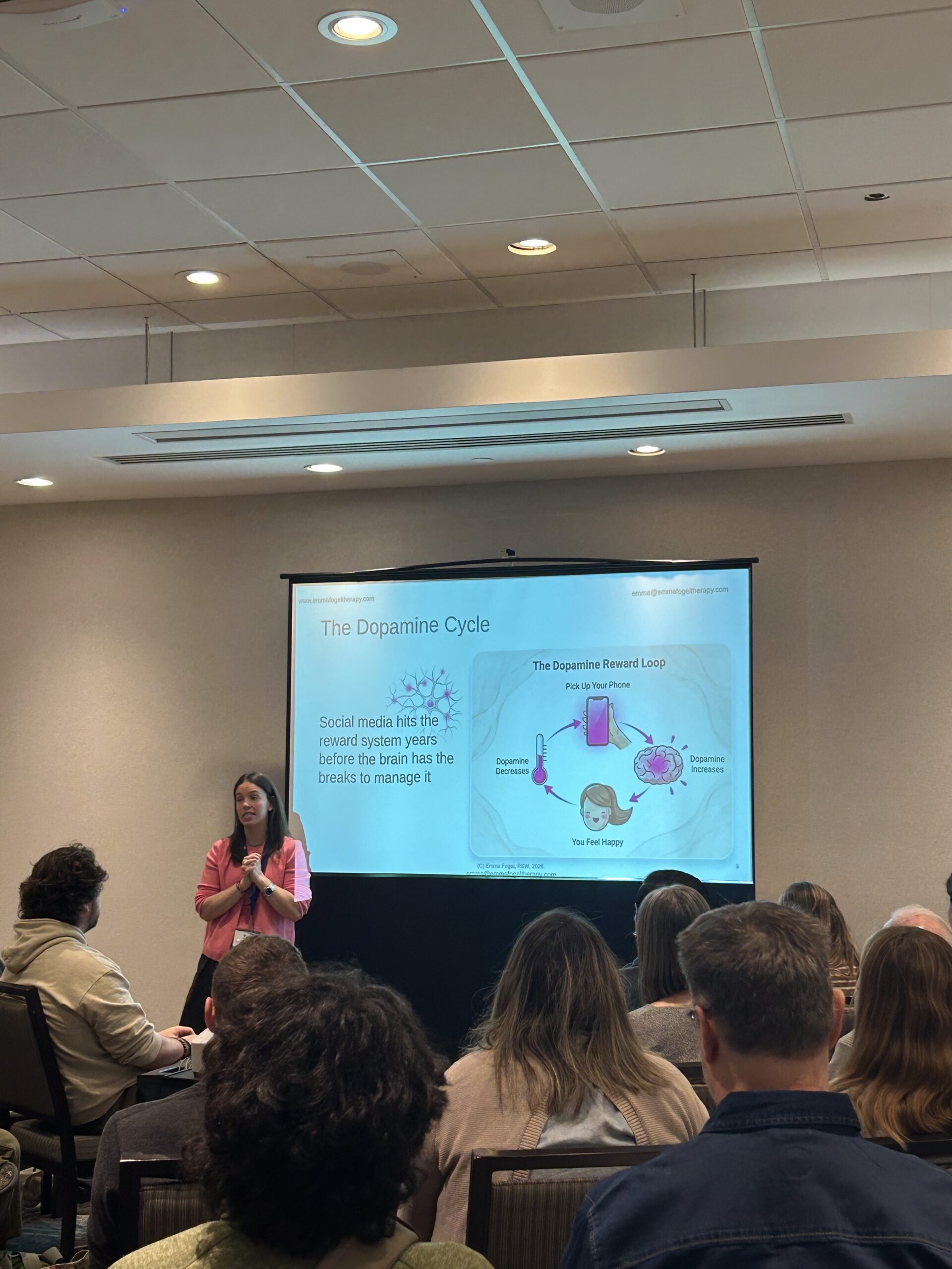 Emma has presented several mental health-informed psychoeducation presentations, trainings and webinars to various audiences. Emma has provided presentations to several schools, camps and corporate communities throughout Ontario. Her presentations focus on mental health education and literacy coupled with evidence-based strategies and resources to help the audience feel equipped to work through daily challenges.
